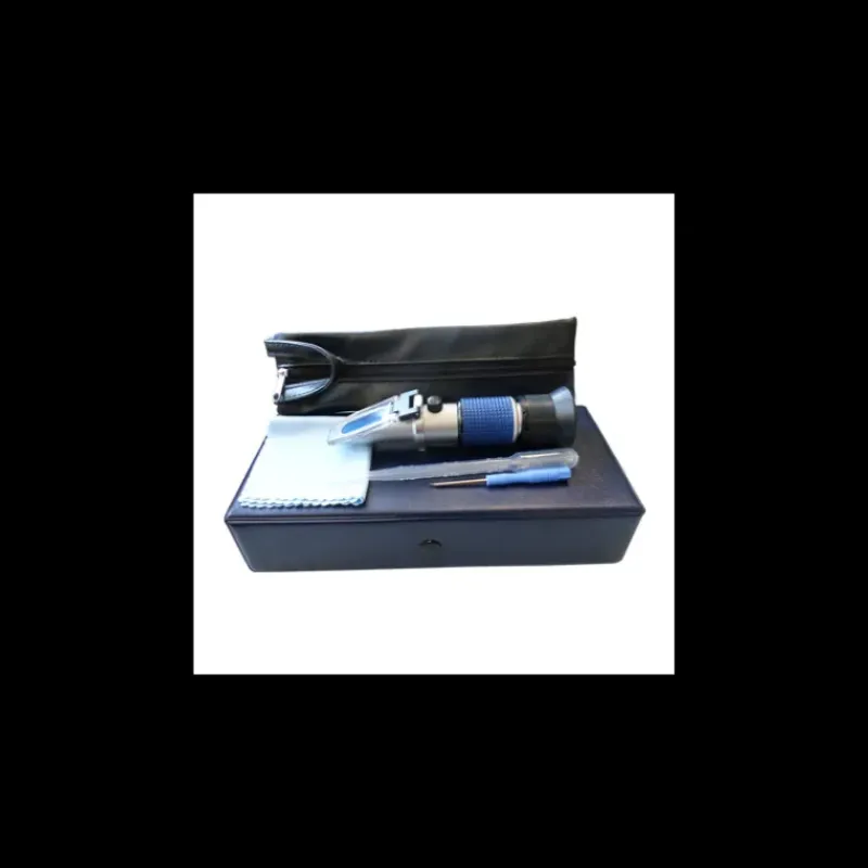 Son design élégant avec une ligne bleu classique, associé à un étui en cuir et un tissu de nettoyage, est gage de praticité. Facile à utiliser, le réfractomètre est fourni avec une pipette d’aspiration et un tournevis pour l’étalonnage.
