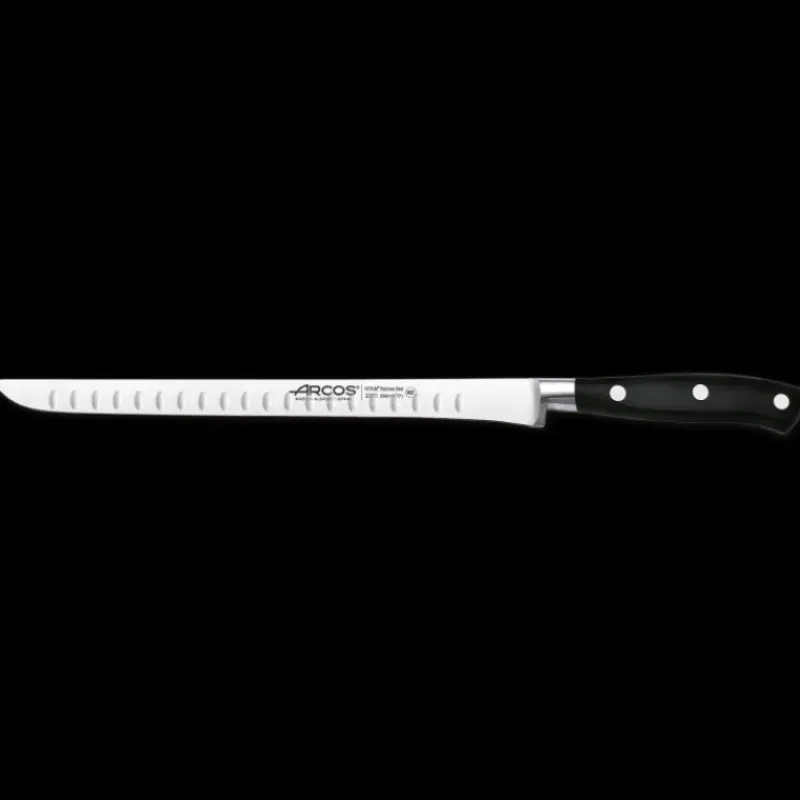 Pour les lames de la collection Riviera, Arcos a utilisé de l’acier inoxydable Nitrum, leur conférant une solidité à toute épreuve, un grand pouvoir de coupe (immédiat et dans le temps) supérieur aux aciers classiques européens (environ + de 40%).