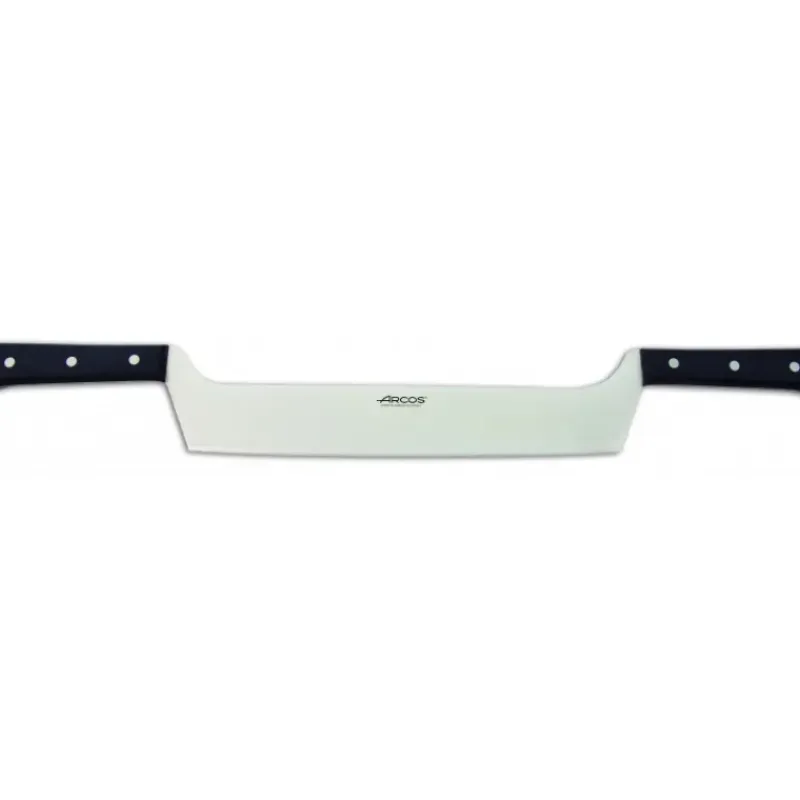 Conçu pour les professionnels, le Couteau à Fromage Double Manche 29 cm Arcos UNIVERSAL est idéal pour couper les fromages à pâte dure. Grâce à ses deux poignées, il permet d’exercer une pression égale de part et d’autre du fromage pour le découper sans effort et de manière régulière. Celles-ci sont faites en polyoxyméthylène, un plastique très dur qui ne se déforme pas (jusqu’à +150°C). Les manches sont fixés au couteau à fromage double manche Arcos Universal par des rivets en inox.