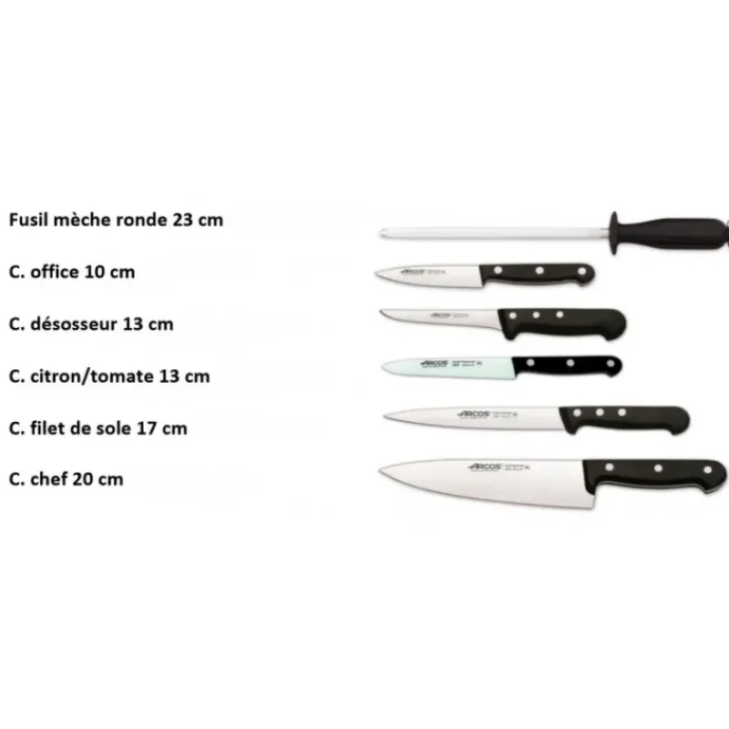 Mallette de cuisine 5 couteaux de cuisine et un fusil Arcos Universal noir