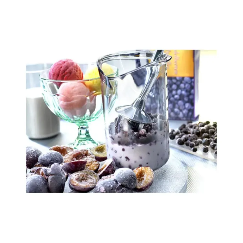 Silencieux, peu encombrant, polyvalent : le Mixeur Plongeant Bamix M160 Deluxe séduira les professionnels et les particuliers. Livré avec un support, il trouvera facilement sa place sur le plan de travail, pour une utilisation immédiate et un faible encombrement. Le support du Mixeur Plongeant M160 Deluxe Bamix a été pensé afin que vous puissiez y ranger les accessoires. Ces derniers se composent d’un disque fouet, un disque mélangeur, un couteau fouet, un gobelet et un moulin.