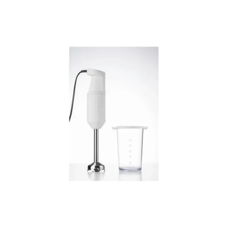 Pour obtenir un résultat satisfaisant, veillez à couper vos aliments en petits morceaux avant de les verser dans le récipient et de les mixer en quelques secondes avec le mixeur plongeant. Une fois que vous avez terminé, détachez le bras, le mélangeur et la tête du mélangeur pour les nettoyer. L’entretien du moteur se fait simplement avec un chiffon humide.