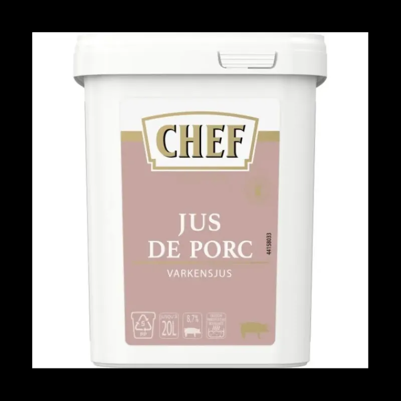 - Boite de 600 g (poids net) pour préparer 20 litres de Jus de porc