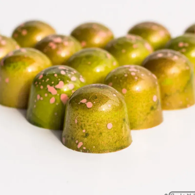 Pour faire des pralines, des chocolats fourrés, ou toute autre sorte de friandises en chocolats, faites confiance à la qualité professionnelle du moule à chocolat cône. Il vous sera facile de réaliser des coques en chocolat uniques en tapissant le moule et ses 32 empreintes de paillettes alimentaires ou de fleurs comestibles. Le démoulage de vos chocolats se fera en un simple geste pour un résultat lisse et brillant.
