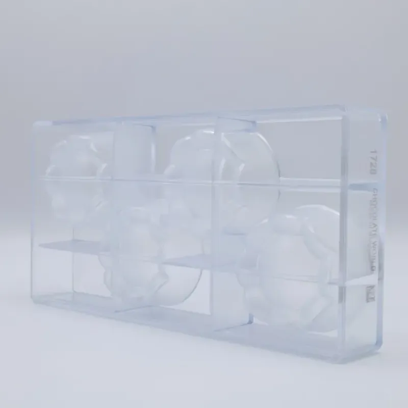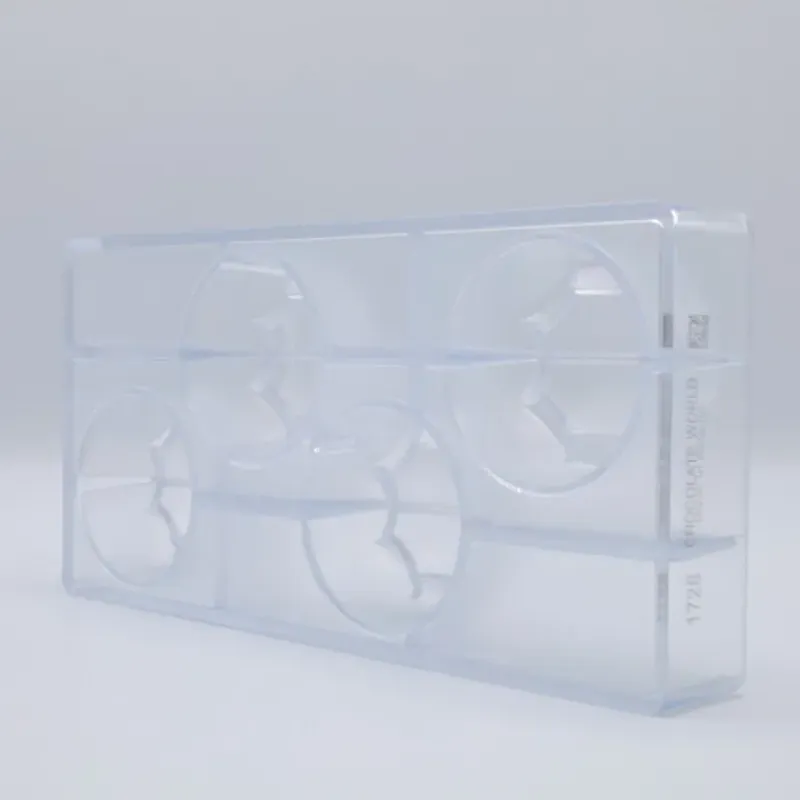 Ce moule à chocolat, conçu en Tritan, permet de créer quatre fleurs délicates de 6,8 cm avec une hauteur de 3,5 cm chacune. D’un poids total de 516 g, chaque empreinte pèse 129 g, offrant ainsi des fleurs en chocolat solides et élégantes.
