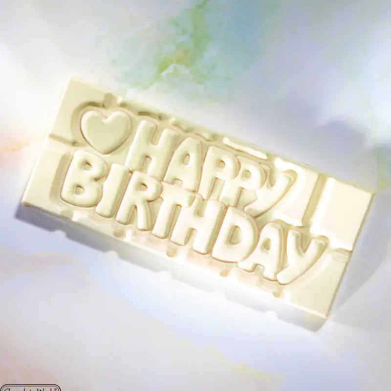 Avec le moule chocolat tablette Happy Birthday Chocolate World, ce sera l’occasion d’offrir le cadeau personnalisé parfait pour les amoureux de chocolat ! Grâce à son inscription « Joyeux Anniversaire« , les tablettes de chocolat anniversaire réalisées avec le moule à chocolat Chocolate World feront des heureux à coup sûr. Il s’agit d’une petite attention qui peut faire toute la différence, que ce soit en cadeau bonus, en cadeau principal ou même en dessert !