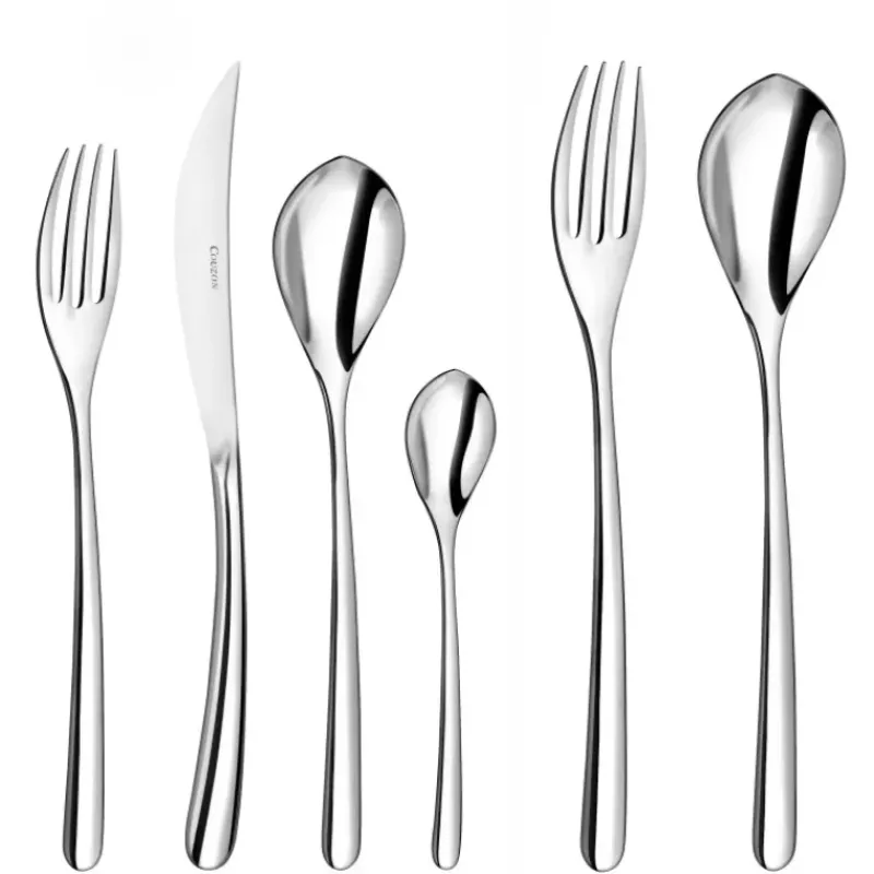 Cette Ménagère Couzon 50 pièces est conçue pour 12 personnes et comporte des couteaux, des cuillères, des fourchettes, des cuillères à café ainsi qu’un ensemble de service (fourchette et cuillère). La finition miroir de ces Couverts Couzon Inox Elixir les rendent parfaits pour une table de fête.