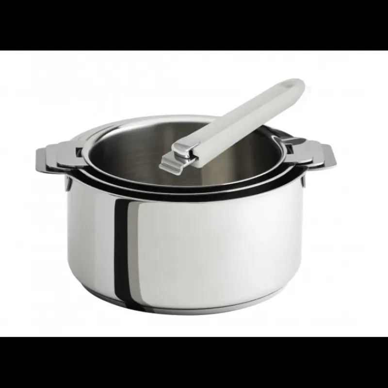 Lot de 3 Casseroles inox avec Poignée Blanche Mutine Amovible Cristel