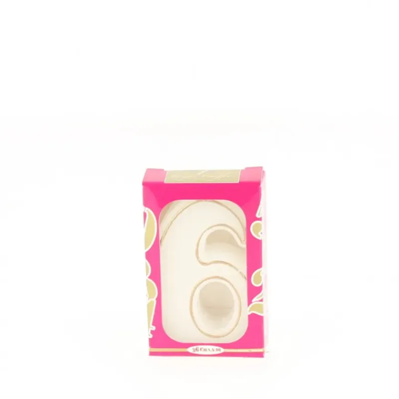 Bougie anniversaire chiffre 6 blanche avec filet doré
