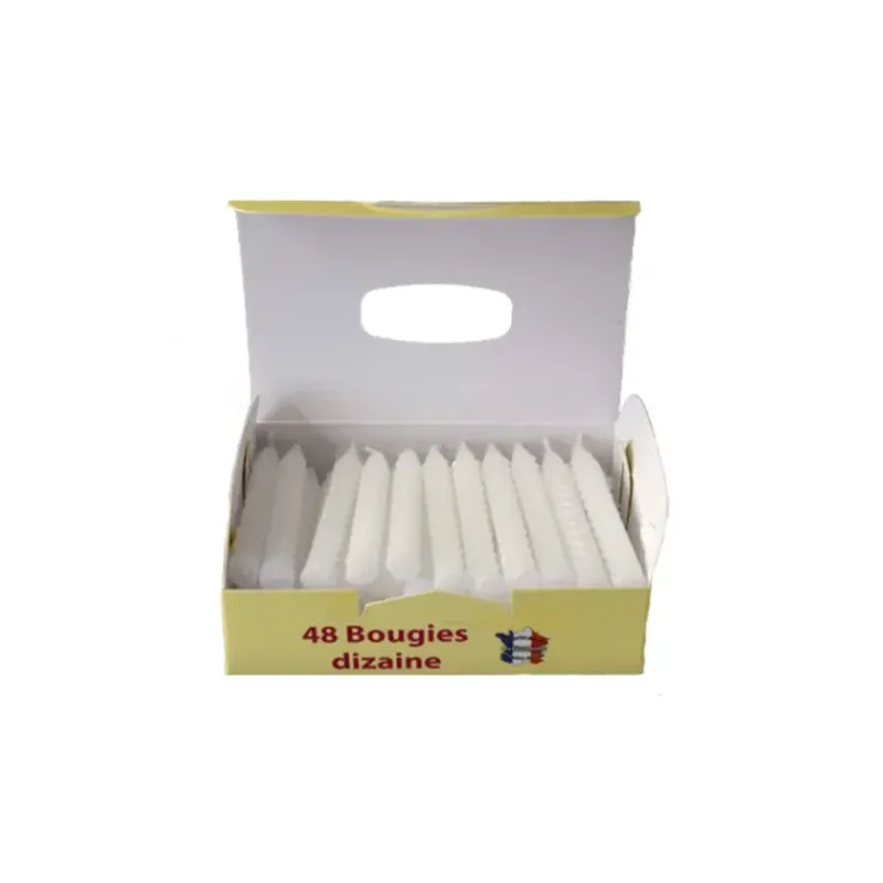 Décorez le gâteau d’anniversaire de l’heureux élu à l’aide des Bougies d’anniversaire torsadées blanches vendues par lot de 48. Ces bougies d’anniversaire torsadées sont réutilisables jusqu’à épuisement totale de la cire et sont fabriquées artisanalement en France.
