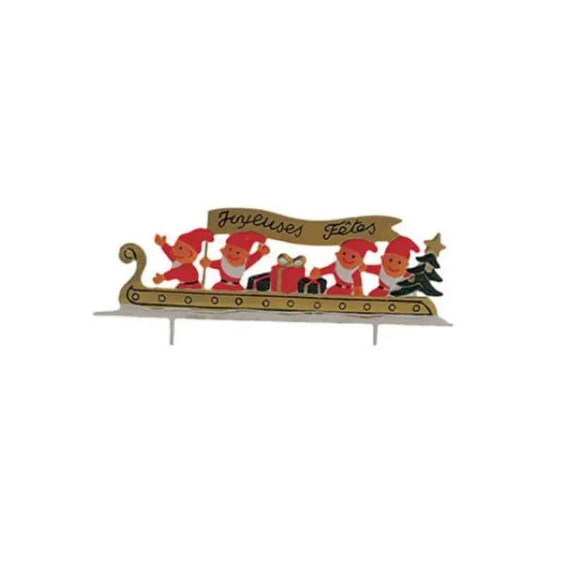 Ornez vos desserts de fin d’année avec cette Frise Joyeuses Fêtes. Ce décor de bûche 10 cm représente le traîneau du Père Noël les lutins à son bord sont prêts à venir déposer les cadeaux au pied du sapin.