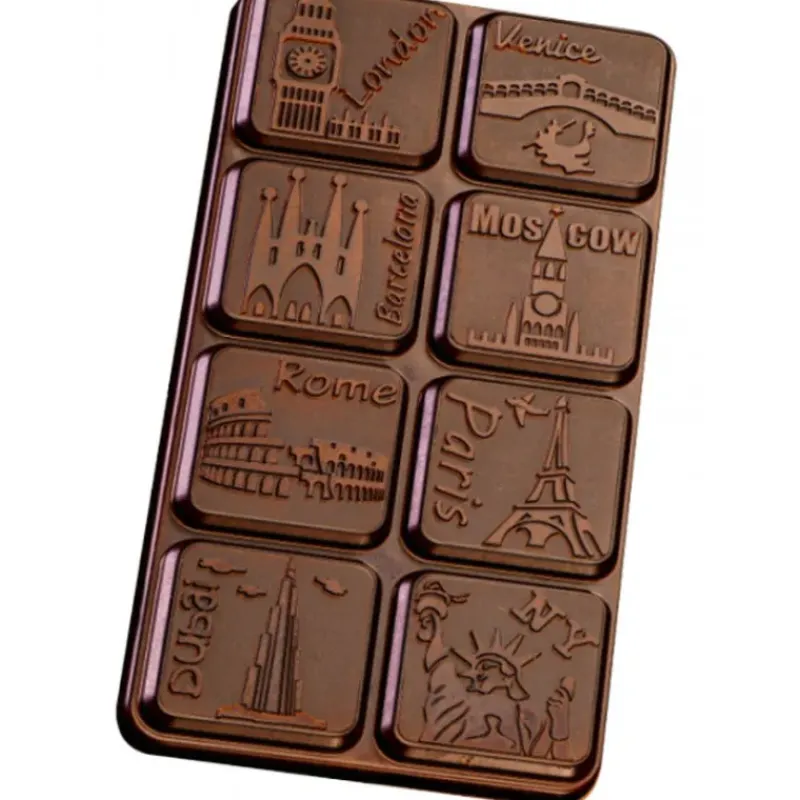 Pour réveiller le voyageur qui sommeille en vous, voici le Moule en Polycarbonate parfait : le Moule Tablette de Chocolat Grandes Villes !