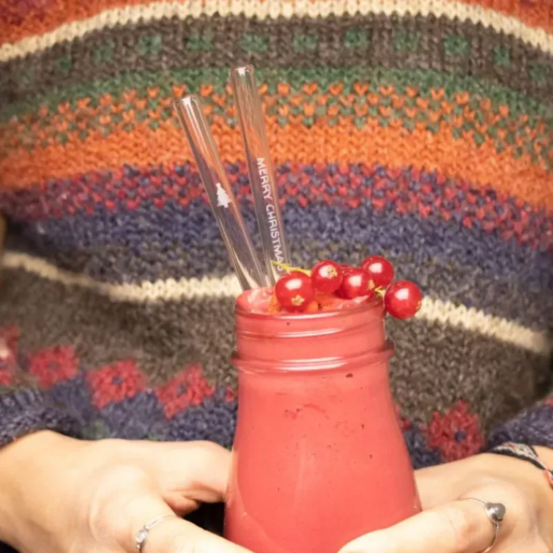 CUISINEADDICT Paille Réutilisable en Verre Joyeux Noël 20cm droite x6 HALM* Accessoires Bar