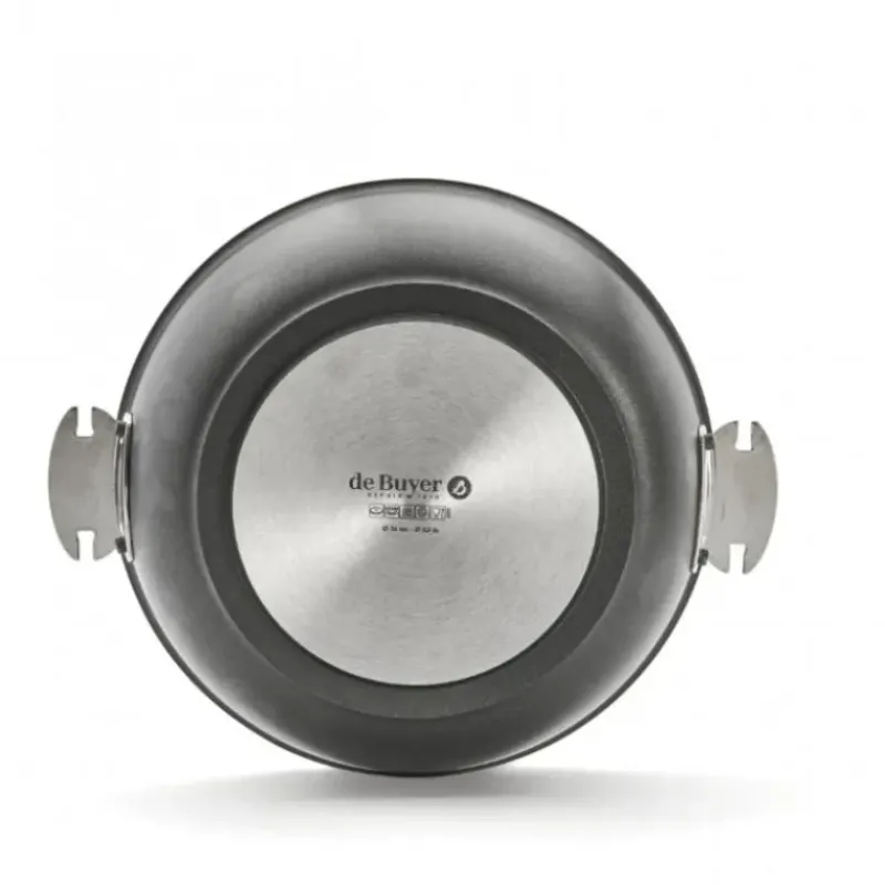 La sauteuse 24 cm est issue de la collection amovible Loqy de la gamme Choc Extrême De Buyer. Cette dernière dispose de deux embases en inox, parfaites pour y fixer des anses ou encore une poignée amovible.
