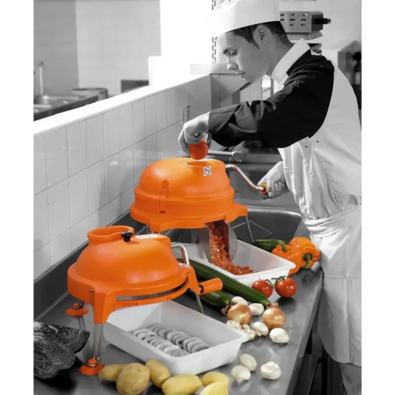 Ustensile professionnel utilisé par les restaurants et la restauration, le Dynacube est un modèle particulièrement résistants aux chocs et aux nombreuses utilisations. Sa manivelle, ses ventouses et sa grande ouverture permet de couper une grande quantité d’aliments en très peu de temps, sans risque et de façon très hygiénique : les mains du cuisinier ne rentrent jamais en contact avec la grille ou l’aliment.