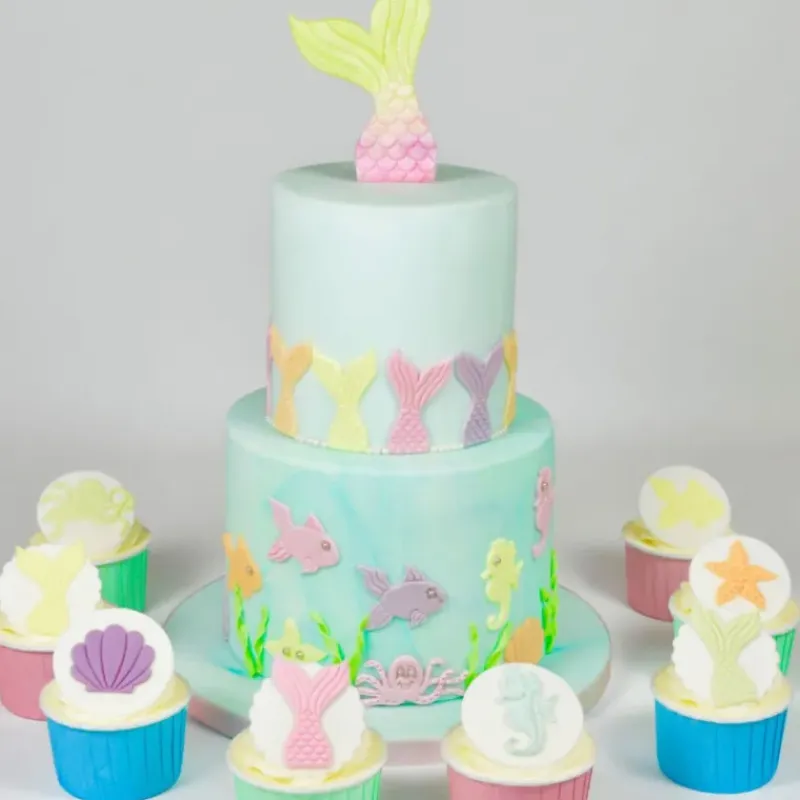Le secret d’un gâteau féérique ? La couleur et les paillettes ! Pour cela, vous pouvez opter pour de la pâte à sucre blanche dans laquelle vous ajouterez quelques gouttes de colorant alimentaire jusqu’à obtenir la teinte souhaitée. Il est également possible de mélanger ensemble 2 pâtes à sucre. Ensuite, il ne vous reste plus qu’à déposer à la surface quelques paillettes alimentaires ! Pour faire tenir la queue de sirène sur le cupcake, veillez à ne pas l’étaler la pâte trop finement afin de pouvoir insérer un cure-dent pour venir le piquer dans le gâteau.