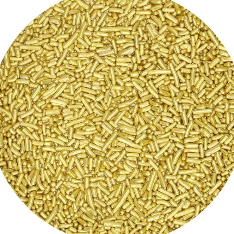 Faites ressortir votre côté « bling bling » ou festif avec des desserts recouverts de Vermicelles Or Métallique. Parsemez vos desserts, vos coupes de glaces ou encore vos cupcakes de ces Vermicelles sucrés dorés à l’aspect métallique.