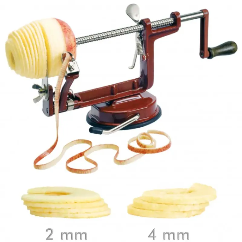 Muni de 2 vis sans fin, ce pèle-pommes multifonctions vous permet d’éplucher, de trancher finement et d’étrogner vos pommes à l’épaisseur souhaitée !