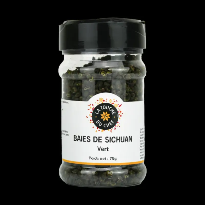 A court de Baies du Sichuan ? Avec ce pot de 75 g de Baies vertes vous aurez de quoi recharger votre moulin à poivre. Aussi appelées Poivre vert de Sichuan, ce dernier est très aromatisé et laissera un goût citronné en bouche.