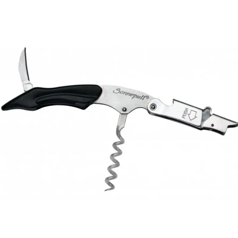 Découvrez le modèle sommelier Screwpull – Le Creuset avec un système à double levier. Le tire-bouchon sommelier va vous permettre d’extraire le bouchon en deux temps et ce sans risquer de le casser ou qu’il ne s’effrite. Également muni d’une lame, vous pourrez facilement et rapidement couper la capsule située sur les bouteilles de vin. Le tire-bouchon sommelier vous permettra également de décapsuler des bouteilles. Un 3 en 1 parfait pour les amateurs de vin.