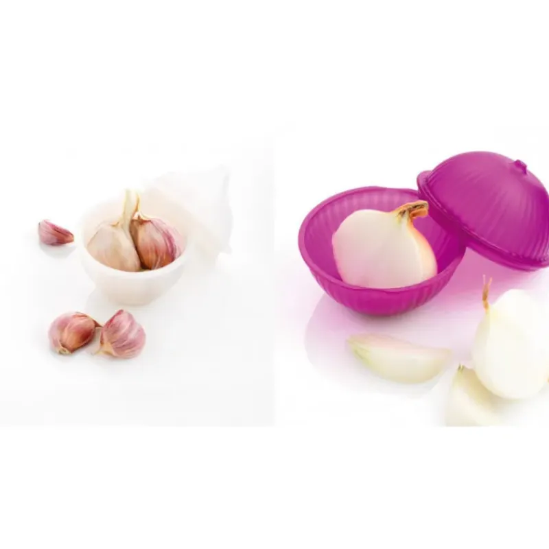 Conserver plus longtemps vos fruits et légumes entamés avec ces 4 boites de conservations colorées ! Ail, citron, oignons tomates… Vos aliments entamés seront à l’abris.