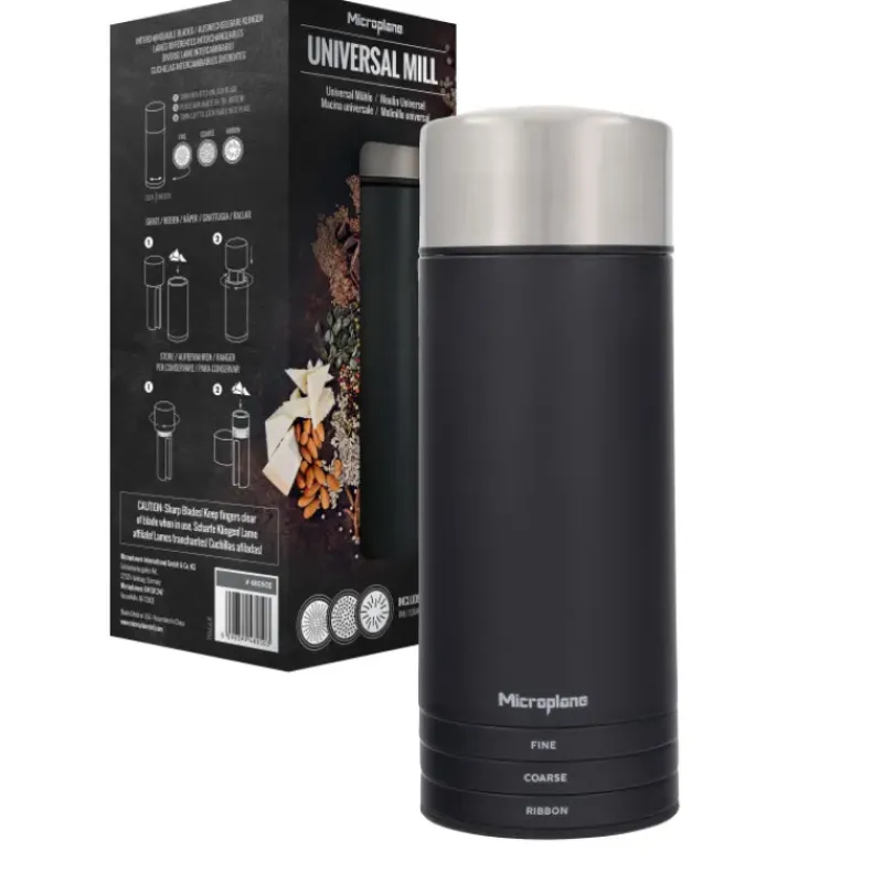 Avec ce moulin à épices professionnel, Microplane propose un produit aussi performant qu’une râpe Microplane, mais dans une forme pratique qui peut être utilisé au quotidien, pour ceux qui considèrent chaque repas comme un moment délicieux à prendre le temps de savourer.