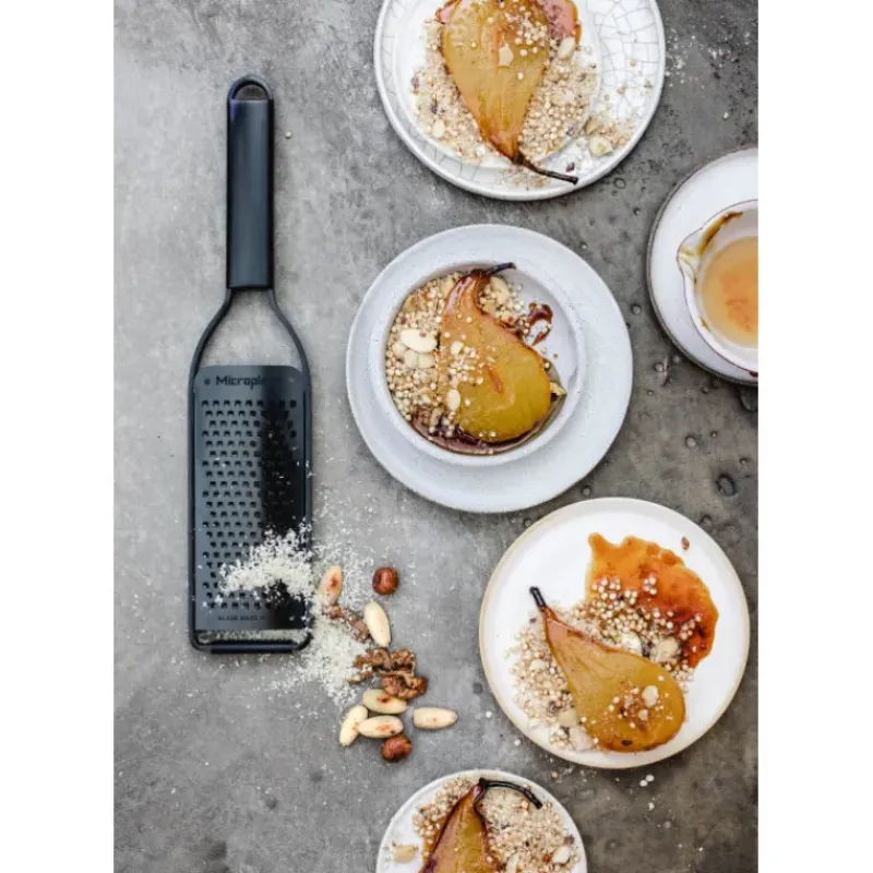 Issue de la dernière collection Microplane : Black Sheep, cette râpe Gros Grains possède un style entièrement noir qui attire le regard. Pour les personnes soucieuses des apparences, cette râpe ne déçoit pas. Elle reflète à l’extérieur la qualité de sa conception.