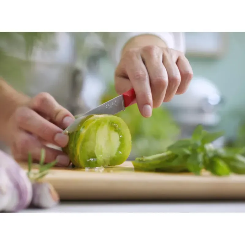 De plus, la lame en inox étant crantée, elle tranchera les peaux les plus épaisses sans souci. Idéal pour les tomates et les courges par exemple, ce couteau d’office rouge vous offre une prise en main sûre et performante. En effet, comme il est constitué de polypropylène, il résiste à l’eau et aux salissures. Il est donc facile d’entretien et ne glissera pas de vos mains lorsque vous l’utiliserez.