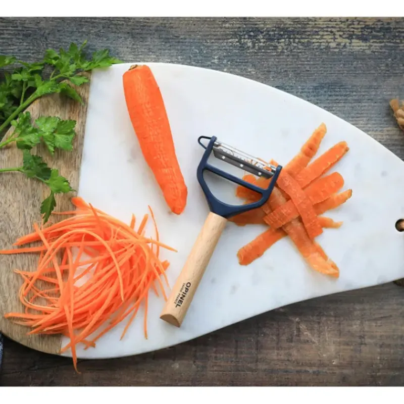 Ustensile de cuisine indispensable, l’épluche légumes accompagne tous les cuistots au quotidien. Pour les ingrédients à peaux fines et épaisses, faites confiance à l’efficacité de l’éplucheur T-duo Opinel.
