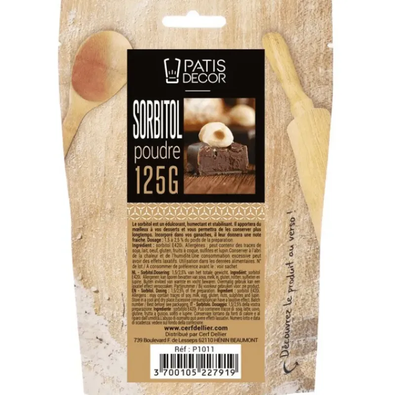 Fabriqué en France, le sorbitol végan permet d’apporter du moelleux à toutes vos savoureuses créations ainsi que de les conserver dans le temps à l’aide de son pouvoir édulcorant. Grâce au Sorbitol 125 g Patisdécor, vos desserts seront savoureux avec une touche de fraicheur et de moelleux supplémentaire.