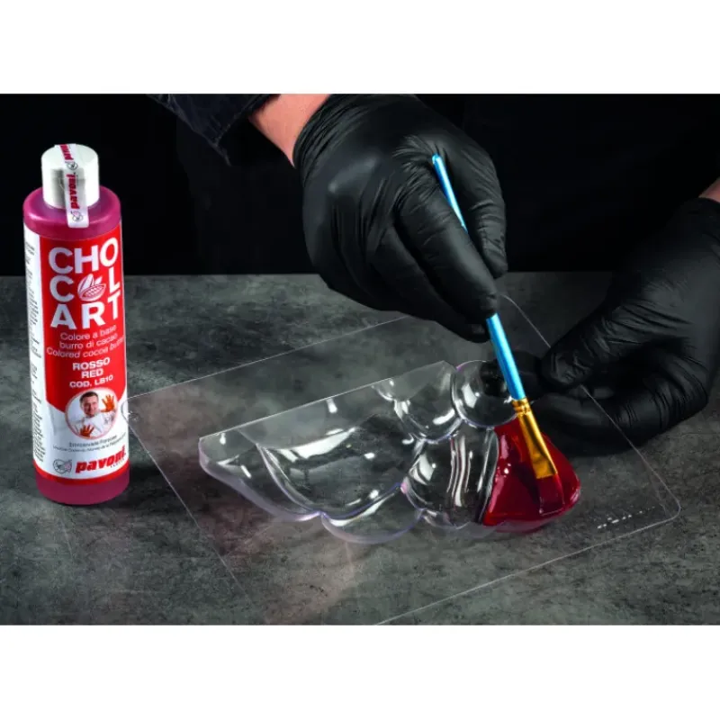 La première étape pour faire un Moulage en Chocolat est de tempérer du chocolat de couverture. Pour cela, munissez-vous d’un thermomètre à sonde et d’un bain-marie. Pendant que vous tempérez votre chocolat, vous pouvez colorer les empreintes à l’aide de beurre de cacao coloré. Ainsi, colorez en rouge le bonnet de père Noël que porte cet Ourson en Chocolat. Ensuite, vous pourrez versez le chocolat tempéré dans vos empreintes et le répartir de manière homogène pour former une belle coque. Placez alors votre Moule à Chocolat Noël dans votre réfrigérateur pour au moins 30 minutes.