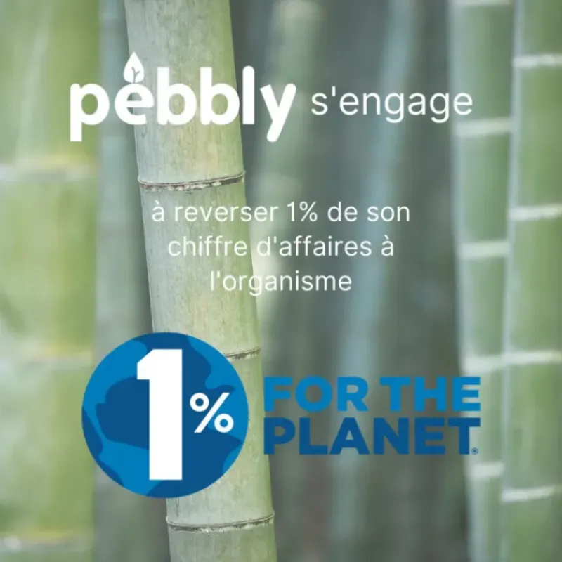 La volonté de participer activement à la transition écologique a conduit la marque PEBBLY à s’associer au programme 1% FOR THE PLANET, en reversant 1% de son chiffre d’affaires à des associations à but non lucratif qui luttent pour la protection de l’environnement.