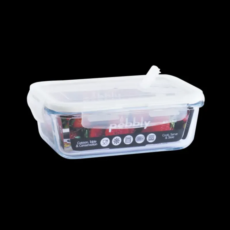 Avec la boîte alimentaire Pebbly, vous allez pouvoir cuisiner, cuire, conserver, transporter et réchauffer votre nourriture ! Multifonction, la boîte conservation est en verre borosilicate sécurisé avec un couvercle en plastique sans Bisphénol A (BPA). Ce couvercle est équipé de 4 clapets latéraux, d’une valve vapeur et d’un joint en silicone amovible pour garantir une étanchéité parfaite.