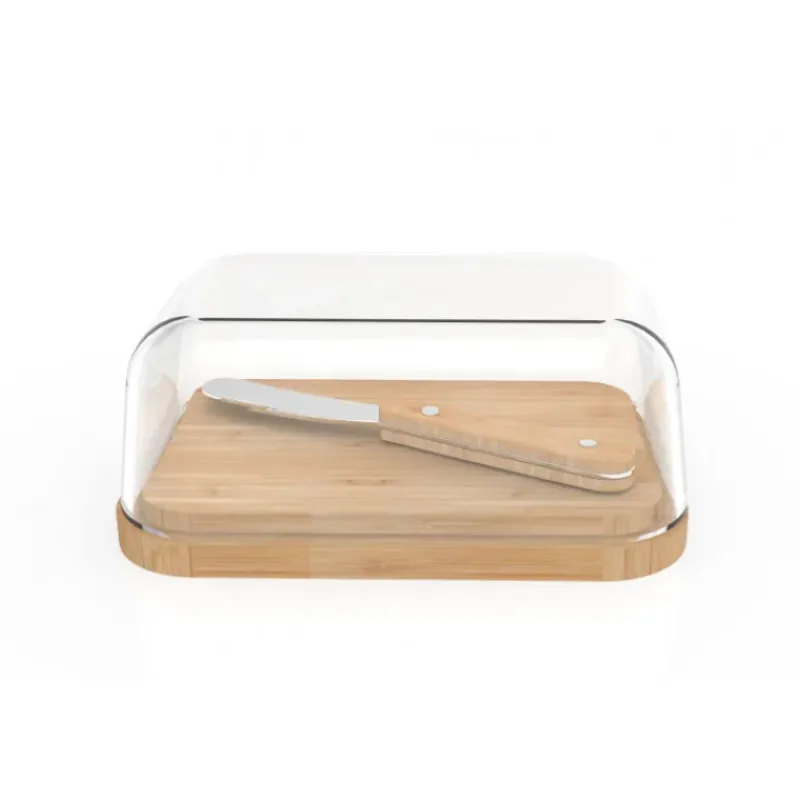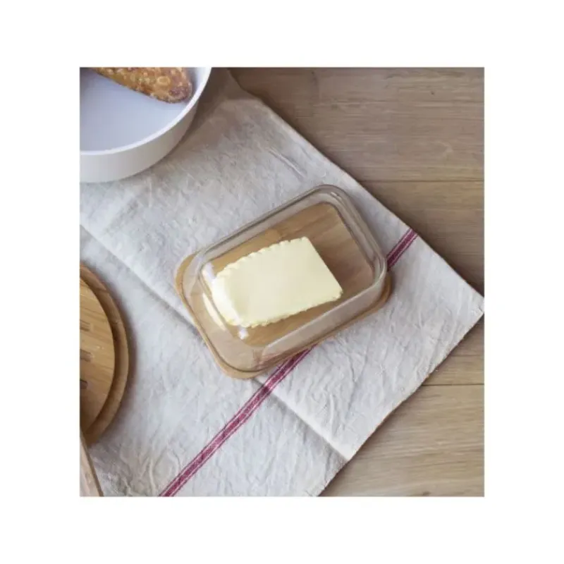 Pour diminuer la dose de plastique dans votre cuisine tout en ajoutant une touche esthétique, choisissez le set beurrier en verre et bambou Pebbly !