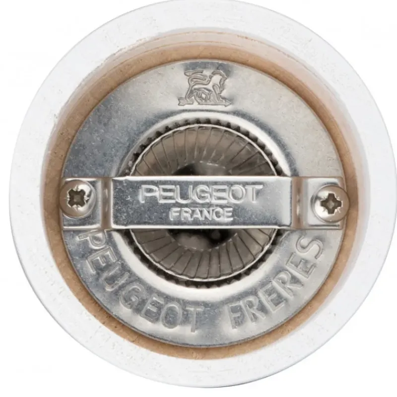 Le moulin à poivre et le moulin à sel Peugeot sont coiffés d’un bouton en acier brossé qui permet de régler la mouture. Plus le bouton est serré, plus la mouture est fine, et inversement.