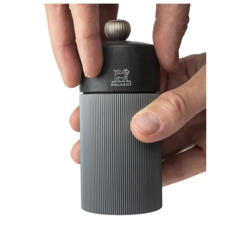 Avec ses stries irisées graphiques et sa combinaison de matières, entre son corps en aluminium et son chapeau en bois de hêtre issu de forêt françaises durables, le moulin à sel Line sera parfait pour habiller vos tables. La teinte carbone de la salière pourra se marier avec celle du moulin à poivre 12 cm aluminium de la même gamme. Pour une association monochrome, le moulin à sel Peugeot carbone existe également en poivrier.