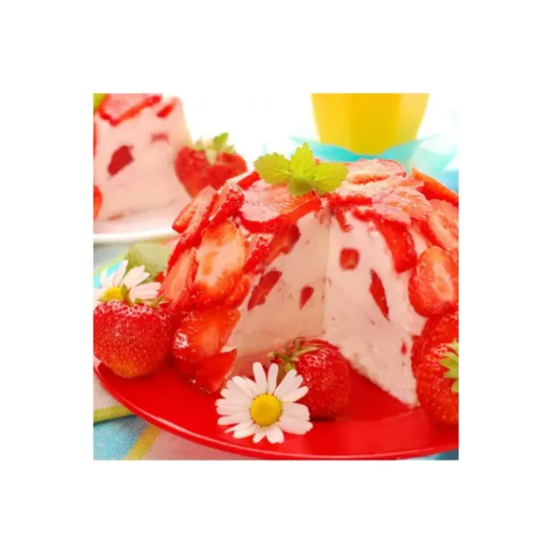 Vous pourrez directement réaliser la base (une génoise) de ce gâteau à couches dans le moule sphérique, et découper ensuite la base du gâteau tranche par tranche. Pour réaliser cette recette, il vous faudra également une préparation pour crème pâtissière, de la pâte d’amande verte, de la pectine pour la confiture de framboise, une poche à douille et un cornet à écriture et du chocolat pour finaliser la décoration de votre Prinsesstårta.