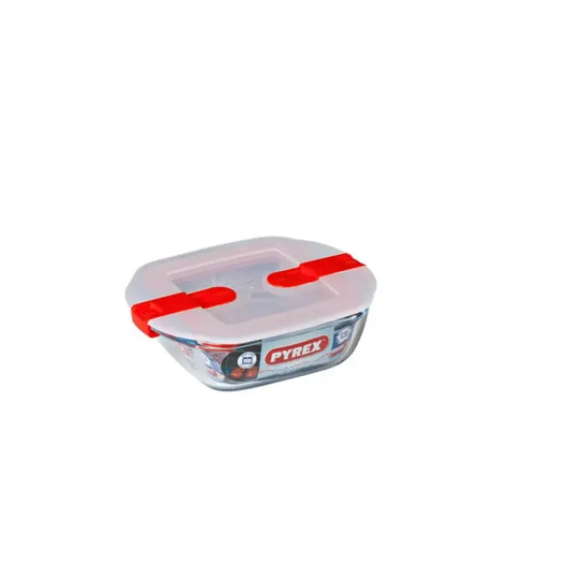 Emportez vos repas faits maison partout où vous vous trouvez, et conservez toutes sortes d’ingrédients durant une longue période avec les boîtes hermétiques Pyrex. Entreposer, conservez, cuire, ou réchauffer, tout est possible avec la boîte de conservation carrée Cook & Heat. Cette dernière possède un corps en verre borosilicate et un couvercle hermétique muni de deux attaches coulissantes et de valves vapeur. Toutes ces caractéristiques s’allient pour créer une boîte de conservation qui vous servira au jour le jour.