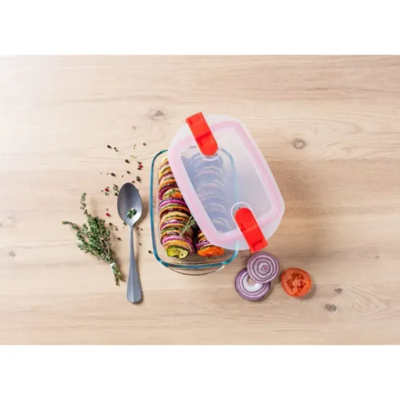 Au four, au micro-ondes, ou au congélateur, la boîte hermétique rectangulaire Pyrex vous garantit de succulents repas partout où vous allez.
