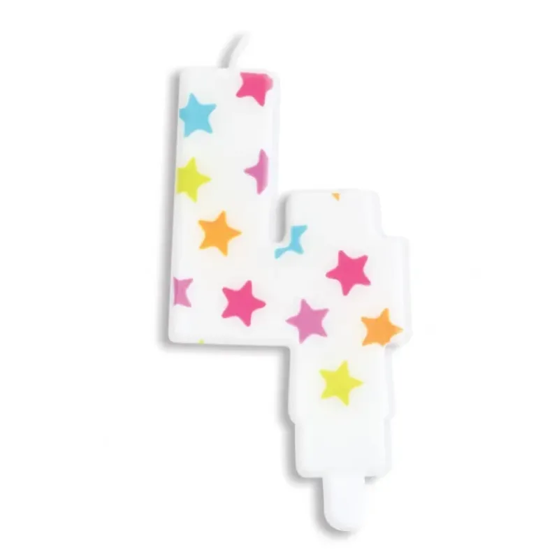 Bougie Chiffre 4 Blanche à Etoiles Multicolores Scrapcooking