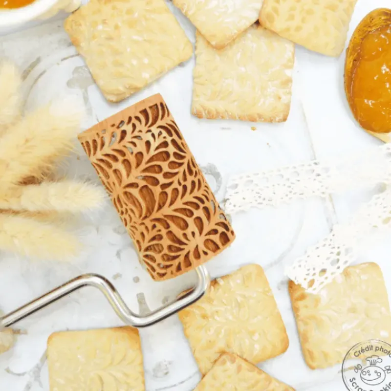 Simple d’utilisation et interchangeable, le rouleau à empreinte ondines vous offre un design original pour épater vos convives. Etalez votre pâte de façon classique, puis prenez le mini-rouleau à pâtisserie et passez-le sur la pâte en y appliquant la pression nécessaire pour imprimer les gouttes dans la pâte. Laissez poser au frais un petit temps avant de passer à la cuisson pour garantir un résultat impeccable, puis faites cuire et déguster vos biscuits décorés.