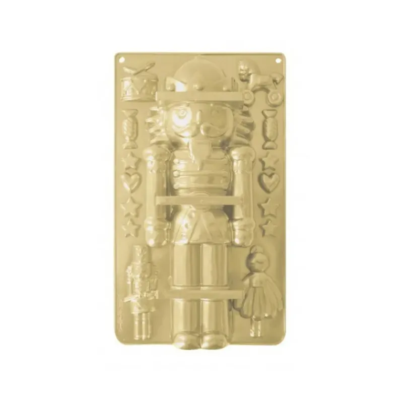 Retrouvez une magnifique réplique du célèbre et traditionnel Casse-Noisette de 33 cm, accompagné de cavités en forme de danseuse, de bonbon, de tambour, de cheval à bascule, d’étoile et de cœur.