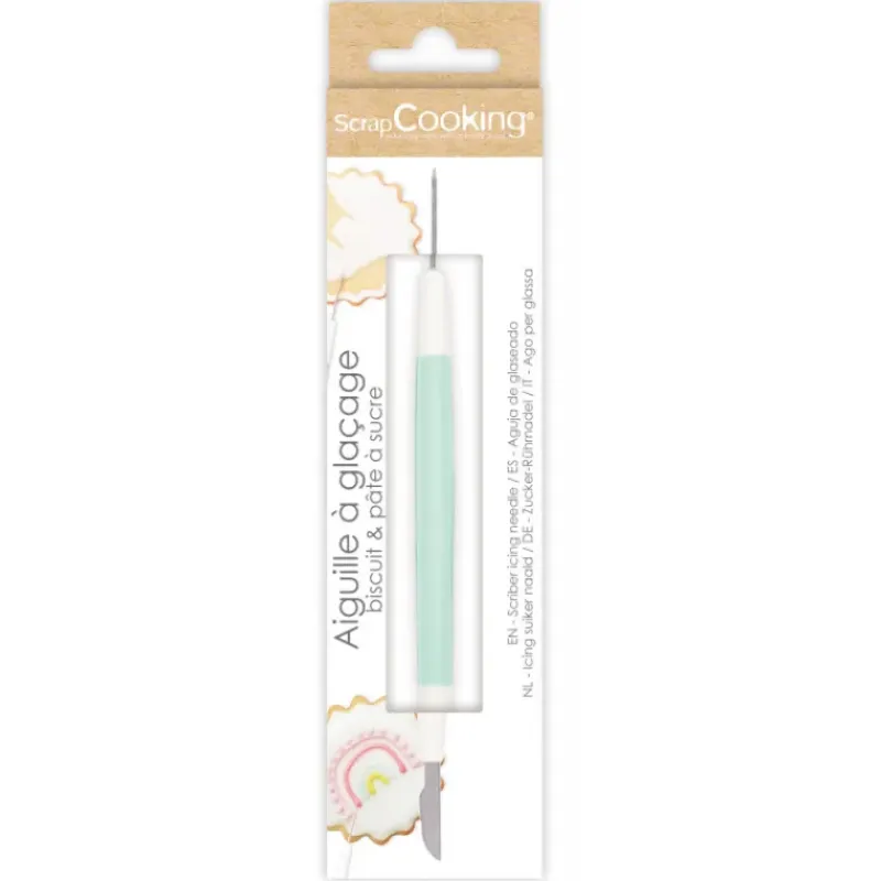 Multifonctions grâce à ses deux faces différentes, cette aiguille pâtisserie est idéale pour la décoration de vos gâteaux, biscuits et autres sucreries. Fabriquée en inox, cette aiguille à sucre pour glaçage vous permettra de lisser ce dernier sur la surface de vos biscuits, d’y dessiner les motifs de votre inspiration ou encore de remplir les coins difficiles d’accès sans risquer que votre glaçage ne déborde. La deuxième partie de cet outil de modelage n’est autre qu’une lame, parfaite pour découper votre pâte à sucre ou encore pour creuser des motifs et ainsi donner du relief à vos pâtisseries.