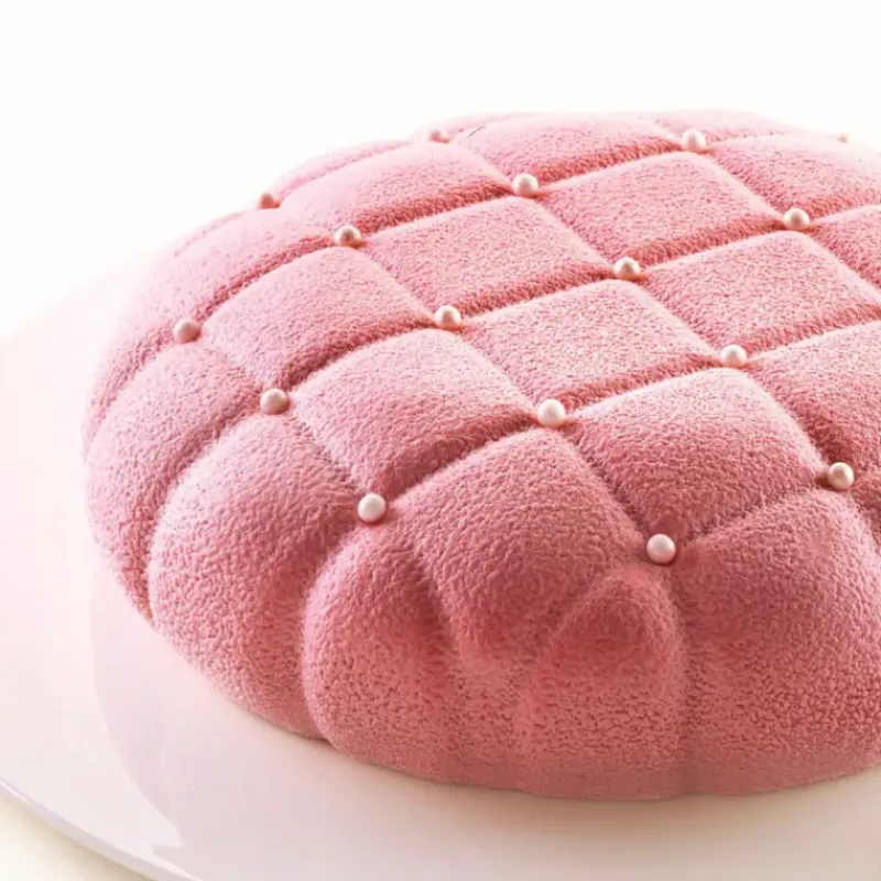 Afin de faire ressortir le motif matelassé du Moule silicone Eleganza Silikomart 3D Design, pourquoi ne pas opter pour un colorant alimentaire en bombe ? Ce dernier va lui apporter un élégant effet velours. Terminez par quelques billes en sucre et savourez !