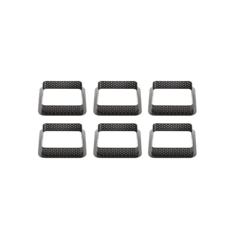 Réinventez l’univers de vos tartelettes habituelles à l’aide du Kit Moule Silicone 6 Tartelettes Carrées 80mm Silikomart Professional ! Avec ce kit d’ustensiles de pâtisserie, vos tartes rondes prendront la forme de tartes carrées grâce au moule silicone carré. Avec ses 6 empreintes, ce moule à tartelettes est idéal pour composer de superbes créations carrées. De plus, sa matière silicone lui offre une certaine souplesse et un entretien aisé en un passage au lave-vaisselle, votre moule carré ressortira comme neuf et sera à nouveau prêt à l’emploi ! Afin de rendre vos tartelettes plus design, le kit pâtisserie comprend un moule cadre perforé fait de matière composite. Les petits trous lui permettent une diffusion de la chaleur pour une cuisson des plus homogènes ! En outre, son démoulage est facilité et donne à la tartelette une forme des plus parfaites.