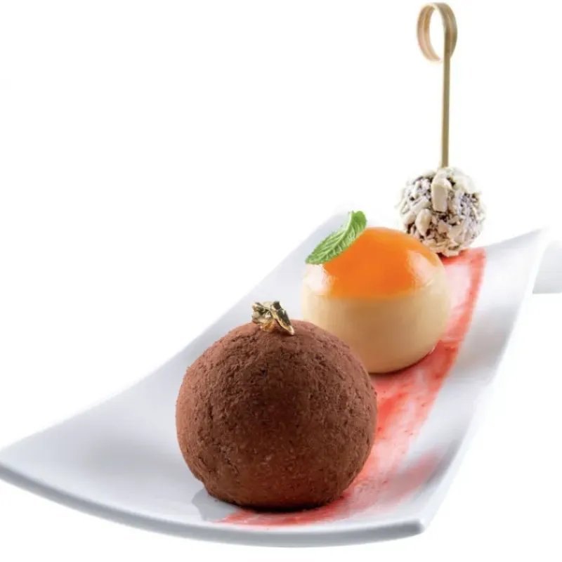 Des sphères parfaitement formées, une présentation à l’assiette design et originale, une décoration adaptable en fonction de vos envies… Voila quelques atouts du Moule Sphère en Silicone Silikomart, mais ce n’est pas tout ! Il passe au four (sans le plateau support) comme au congélateur et résiste donc aux températures les plus extrêmes (-60°C à +230°C), pour des desserts chauds ou froids. Il est composé de 2 parties A et B et d’un plateau support pour vous permettre de réaliser des pâtisseries parfaitement sphériques, et la partie supérieure est entièrement transparente pour avoir une visibilité totale de votre préparation.