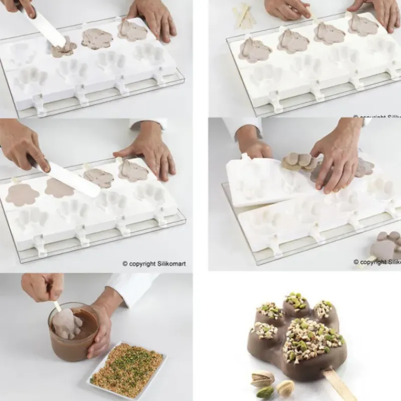 Moule à glace silicone « Patte » 8 empreintes avec bâtonnets SilikoMart