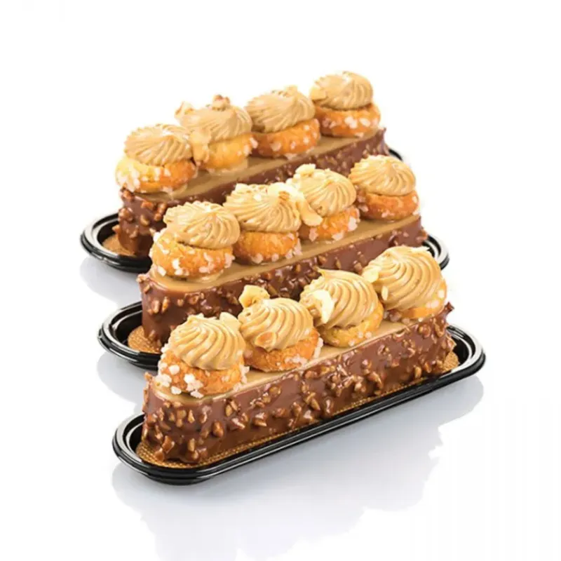 Composé de 10 empreintes ce moule en silicone vous permettra de réaliser 10 éclairs à la fois à vous de pousser la revisite au delà de la forme et de créer de nouvelles associations de couleurs et de saveurs. Inclus avec ce moule silicone 10 éclairs 13 x 2,5 cm un emporte-pièce (découpoir) en forme d’éclair parfaitement adapté à la forme du moule SilikoMart afin de vous aider lors de la réalisation d’inserts ou de bases en biscuit. Pour la présentation de vos éclairs, 10 mini plats de présentions (semelle à gâteau en plastique) sont inclus : idéal pour présenter les éclairs en vitrine ou sur un buffet sans les abîmer.