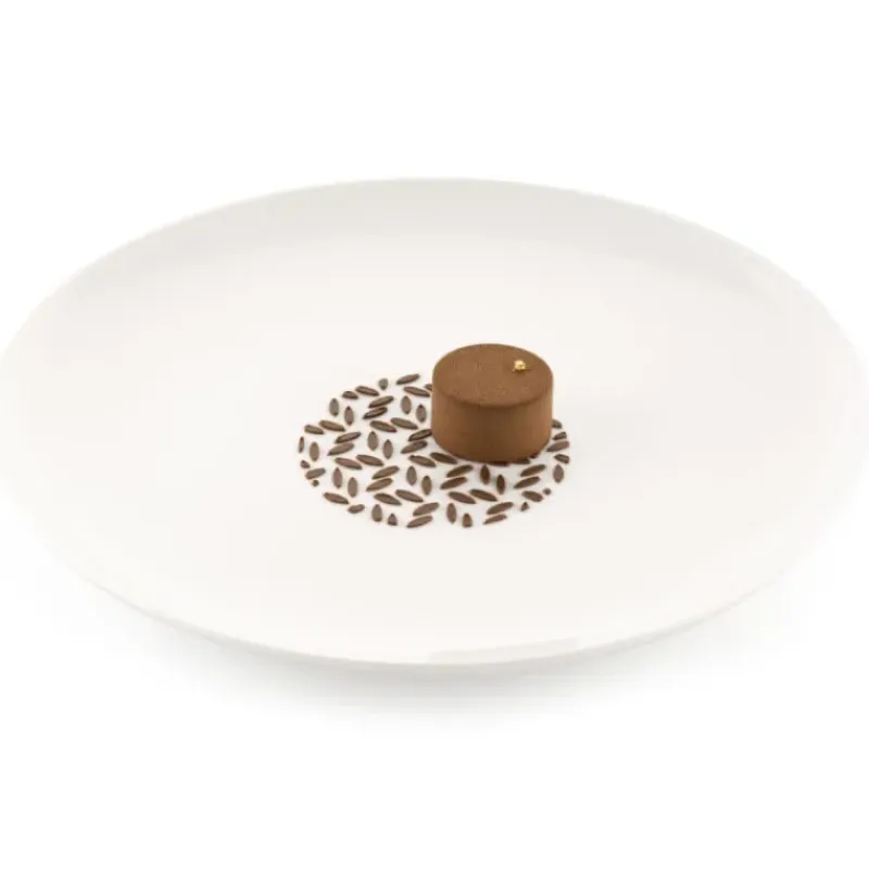 Chaque moule silicone vous offre un pochoir Silikomart d’un diamètre de 10 cm, parfait pour ajouter une touche de sophistication à vos assiettes. En collaboration avec le Chef Pâtissier Titouan Claudet, ce pochoir est un indispensable pour éblouir vos invités à chaque occasion avec une décoration à l’assiette en forme de feuille époustouflante.