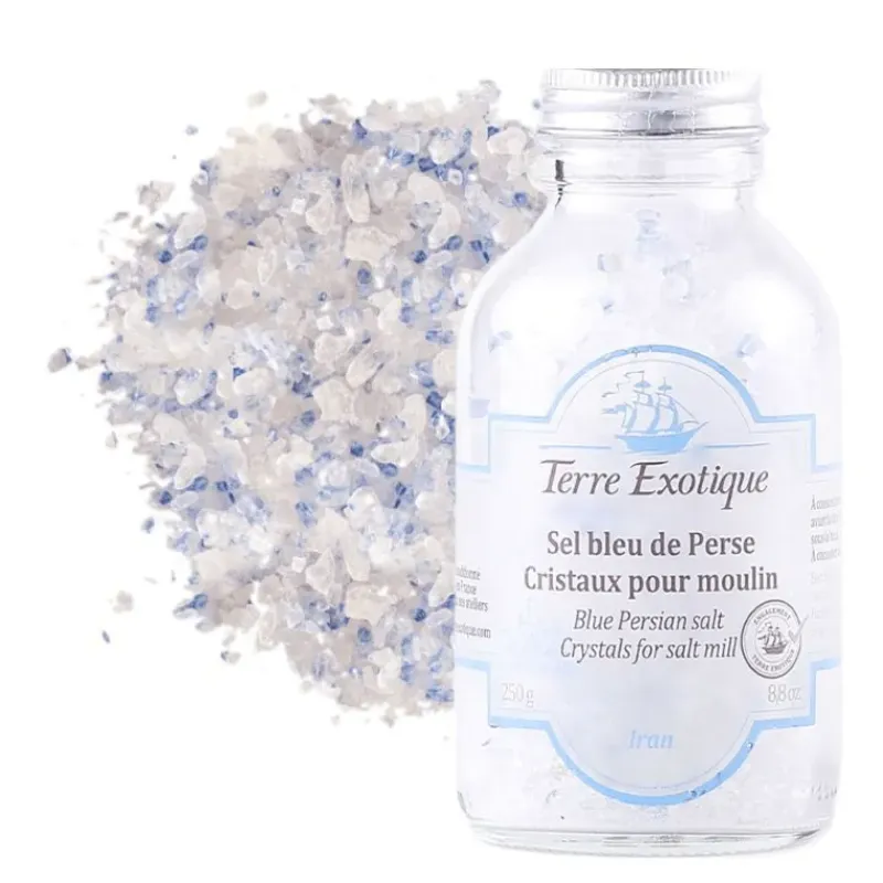 Originaire d’Iran, découvrez le Sel Bleu de Perse en Cristaux 250 g Terre Exotique. Ce sel pour moulin se différencie par sa jolie couleur bleue intense et par son histoire.